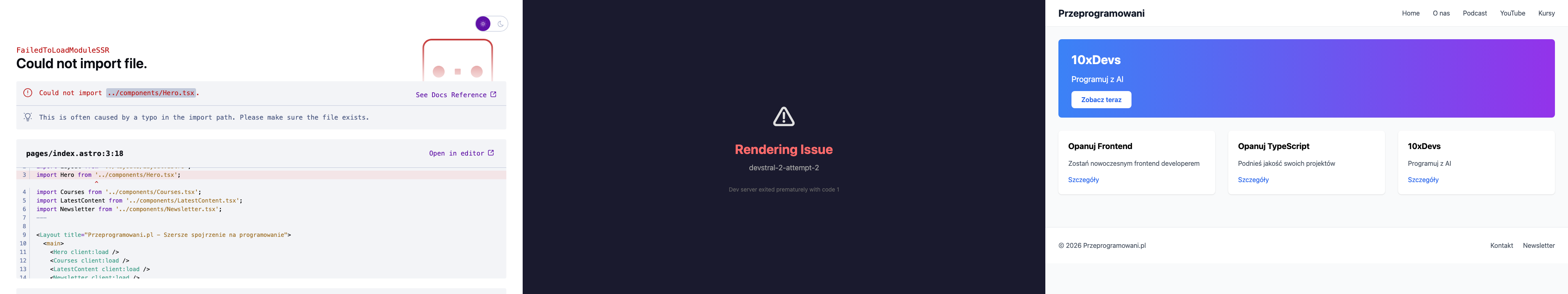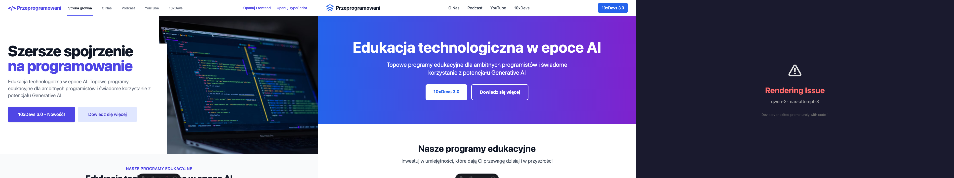 See how LLMs perform at coding the Przeprogramowani.pl website in Astro + React + Tailwind + Cloudflare stack.